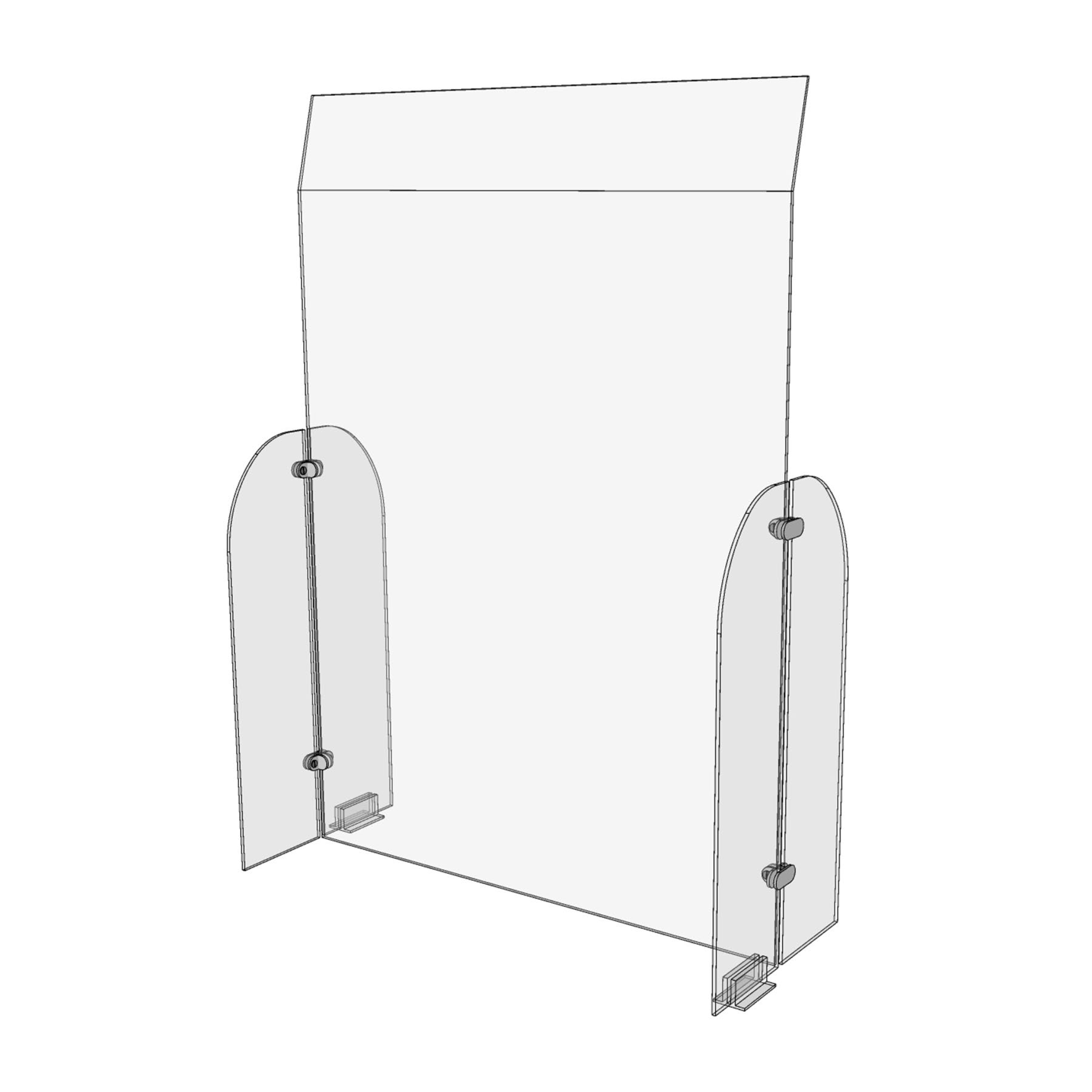 The Single Panel Guard with Angled Top is used to prevent direct contact between the customer and the attendant. The angled top serves extra protection from air particles that travel upwards, especially after a sneeze. For use on counters that are at least 13 inches deep or more.