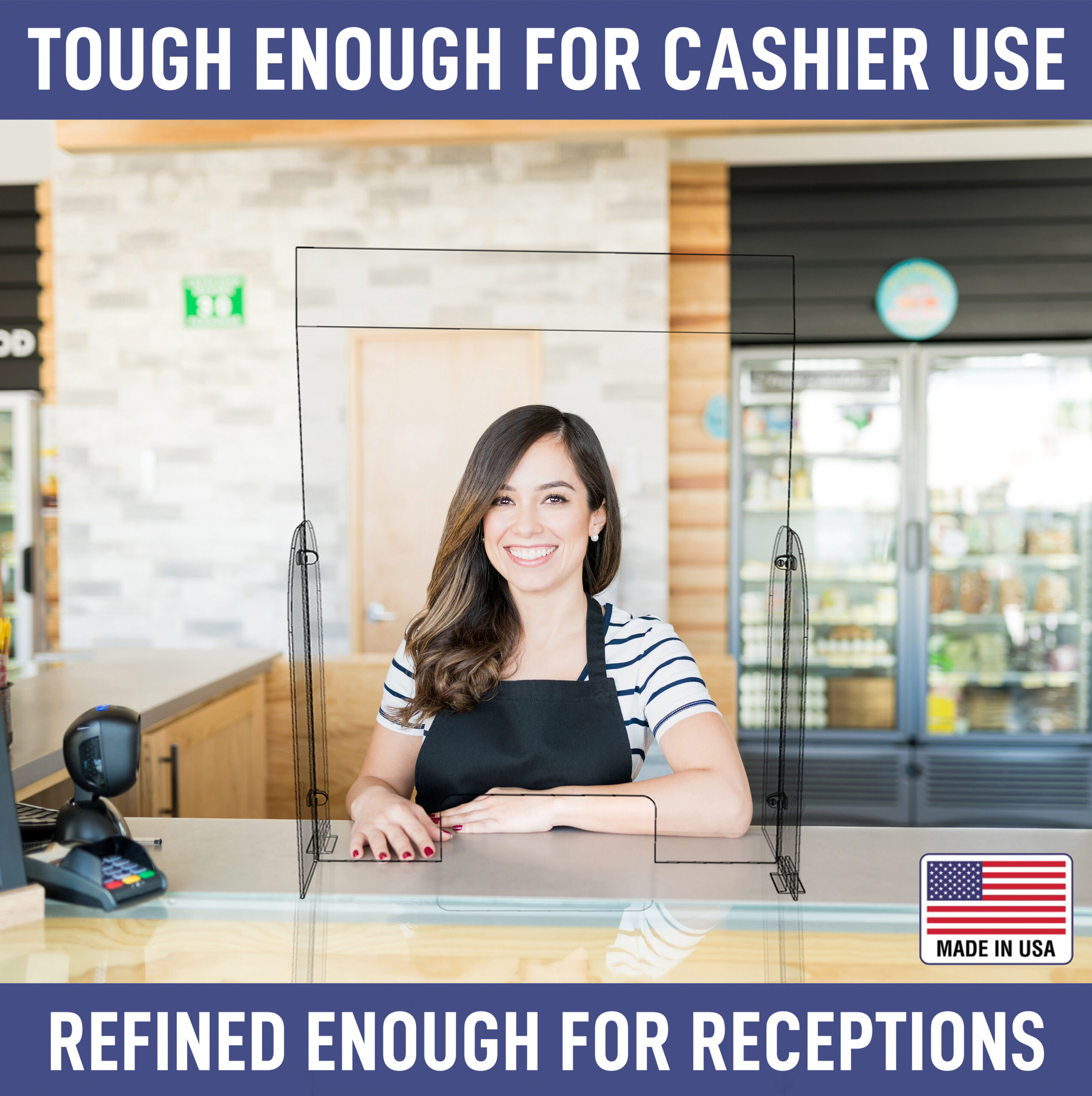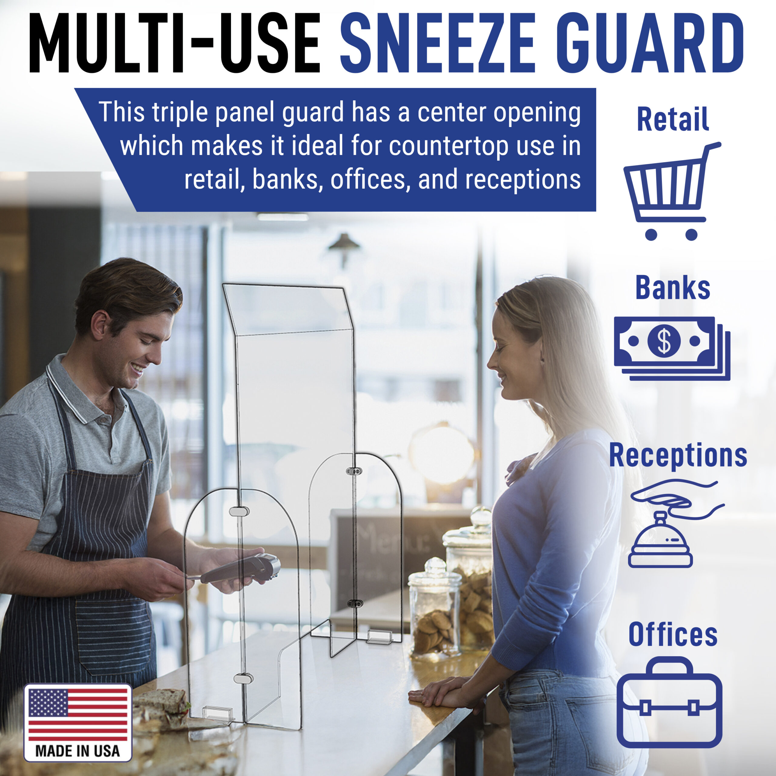 Single Panel Guard with Angled Top and Transaction Opening – (Part # CV19-SPG-TO-AT-K)