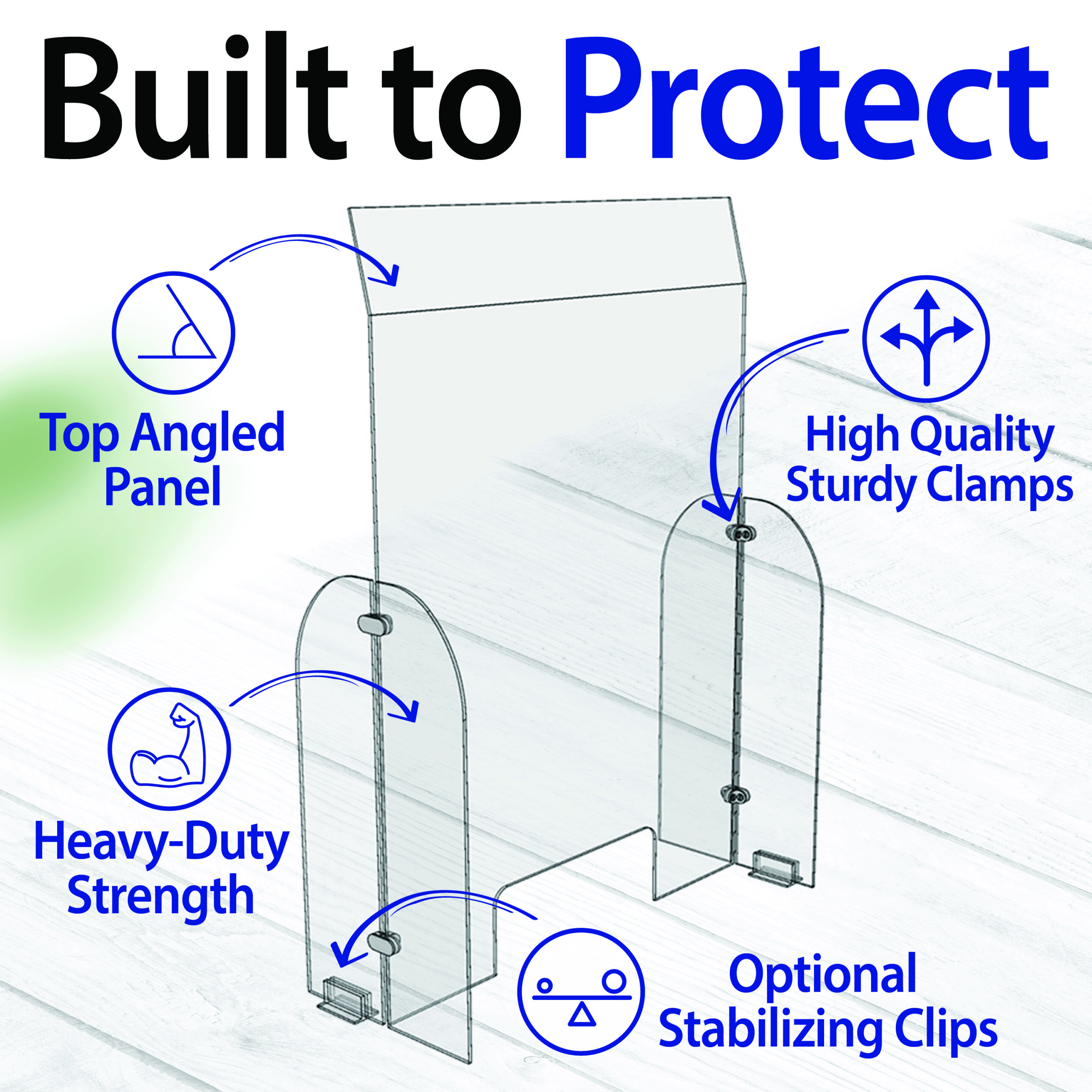 The Single Panel Guard with Transaction Opening is used to prevent direct contact between the customer and the attendant. The angled top serves extra protection from air particles that travel upwards, especially after a sneeze. For use on counters that are at least 13 inches deep or more. Comes with transaction cutout, 5 inches high, and 14 inches wide.