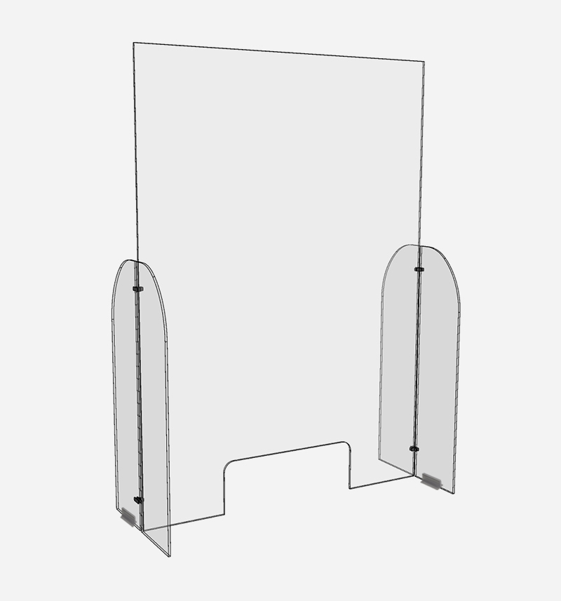 The Single Panel Guard with Transaction Opening is used to prevent direct contact between the customer and the attendant. For use on counters that are at least 13 inches deep or more. Comes with transaction cutout, 5 inches high and 14 inches wide.